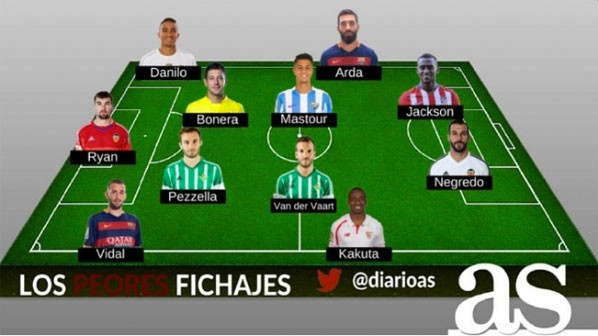 İspanyol basınının önde gelen kuruluşlarından olan AS Gazetesi'nin yayınladığı en kötü transferler 11'inde Arda Turan'ın yanı sıra takım arkadaşı Vidal ve Jackson Martinez, Negredo, Van de Vaart gibi isimler de bulunuyor.