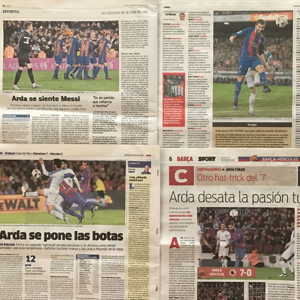 El Mundo Deportivo gazetesi, "Arda, kimse üç yıldızı (Neymar-Messi-Luis Suarez) hatırlamasın diye bir hat-trick daha yaptı." ifadesini başlığına çıkararak yaptığı yorumda, "Arda, Noel arifesinde Nou Camp'ı dolduran 64 bin taraftarın önünde Messi'yi aratmadı. Arda, 3 yıldızın forma giymediği maçta Barça'nın forvetteki komutanlığını eline aldı. Dikkat edin! Arda, bu sezon tüm turnuvalarda toplam gol sayısını 11'e çıkardı." ifadelerini kullandı.