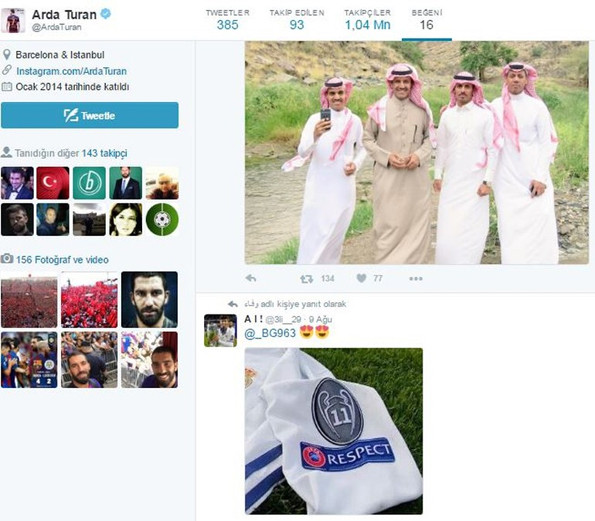 Arda Turan, Real Madrid'in 11. kez Şampiyonlar Ligi şampiyonu olması anısına özel olarak yaptırılan bir forma fotoğrafının yer aldığı Twitter paylaşımını beğendi.