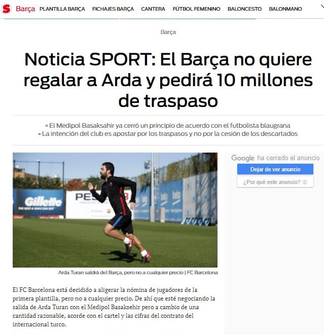 Katalan Sport Gazetesi'nin haberine göre; Barcelona, Arda Turan'ın Başakşehir'e kiralık transferine sıcak bakmıyor. Oyuncuyu satmak isteyen Katalan kulübü, İstanbul ekibinden bonservis bedeli olarak ise 10 milyon euro talep ediyor.