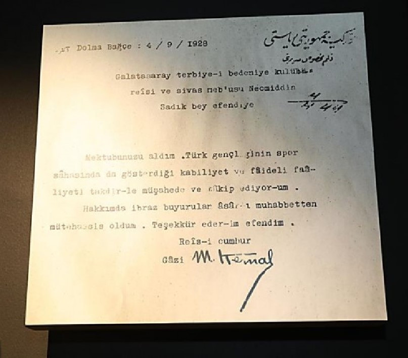 Atatürk'ün Galatasaray'a yazdığı mektup