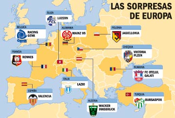 İsviçre'de Luzern, Belçika'da Genk, Almanya'da Mainz, Polonya'da Jagellonia, Fransa'da Rennes, Çek Cum'da Viktoria Plzen, Romanya'da Otelul, İtalya'da Lazio, İspanya'da Valencia ve Avusturya'da Wacker gibi sürpriz takımlar zirvede yer alıyor.