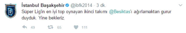 Başakşehir karşılaşmadan sonra resmi Twitter hesabından attığı bir tweetle Beşiktaş'a gönderme yaptı.