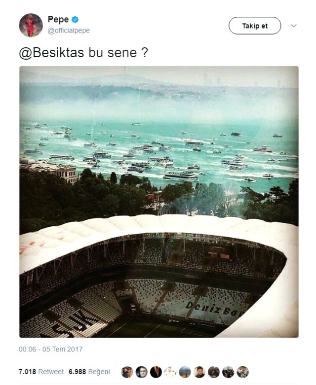 Beşiktaş'ın bu transferi duyurmasının ardından Pepe, kişisel Twitter sayfasından Beşiktaşlı taraftarların şampiyonluk kutlamalarındaki teknelerle boğaz turu yaparkenki fotoğrafını paylaşarak, "Bu sene"? yorumunu yaptı. Taraftarlar ise bu paylaşımı beğeni yağmuruna tuttu.