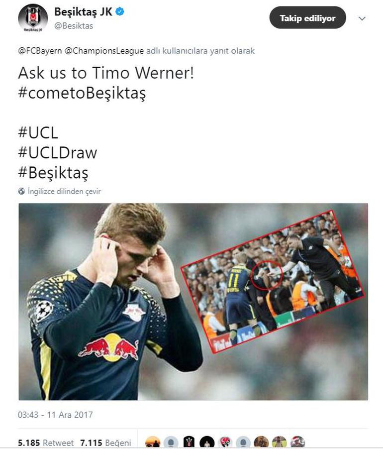 Beşiktaş, bunan ardından bir paylaşımda daha bulundu ve "Bizi Werner'e sorun" paylaşım ile rakibine göndermede bulundu. Leipzig'in golcüsü Timo Werner, gruptaki ilk maçta, Vodafone Park'taki seyircinin yaptığı tezahürat sonrası kulaklarında rahatsızlık hissederek oyundan çıkmıştı.