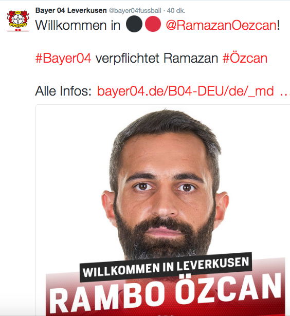 Resmi duyuruda 'Hoşgeldin Rambo Özcan' ifadeleri kullanıldı.