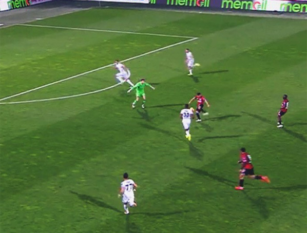 27. dakikada Gençlerbirliği yarı alanından atılan uzun topta kalesini terk eden Fabri, ceza alanı dışında Rhodolfo ile çarpışınca top bir anda Serdar Gürler'in önünde kaldı.