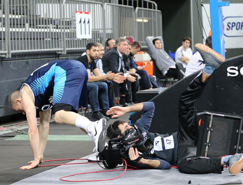 Hızını alamadı kameramanı ezdiİkinci periyotta savunma sertliğini artıran Türk Telekom, Harris, Haislip ve Cevher Özer'in sayılarıyla 8-0'lık seri yakaladı ve 14. dakikada 29-28 öne geçti. Cenk Akyol'un 3 sayılık atışıyla öne geçen Beşiktaş Sompo Japan, soyunma odasına 37-36 üstün gitti.