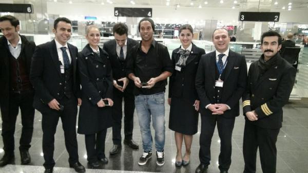 THY'nin tarifeli seferiyle Barcelona'dan İstanbul'a gece geç saatlerde gelen efsane futbolcu Ronaldinho'yu Atatürk Havalimanı'nda ünlü Menajer Ümit Akbulut karşıladı. Havalimanı çalışanları ve Türk Hava Yolları uçuş ekibinin fotoğraf çekilme isteğini kırmayan ünlü forvet özel bir araca binerek havaliman'ndan ayrıldı.