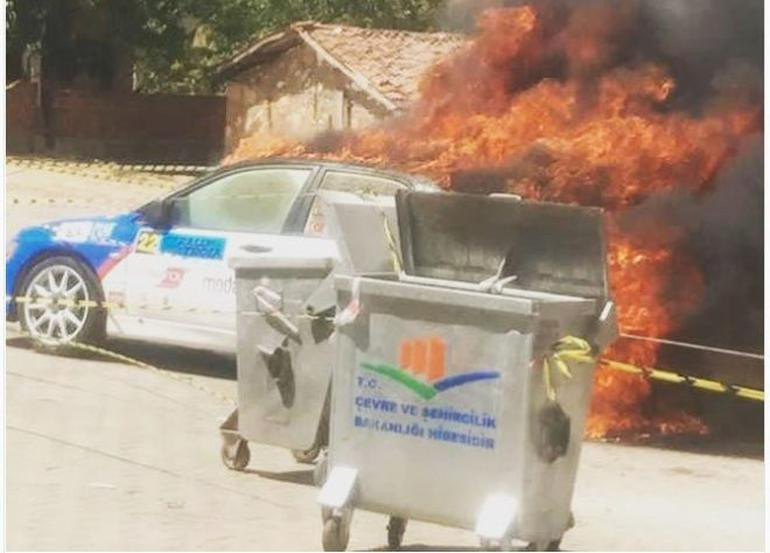 Ünlü kadın rallici Burcu Çetinkaya'nın yarış sırasında otomobili alev aldı.