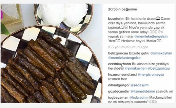 "Bir hamilenin dramı. Canın ister diye yanında bavulunda sarma taşımak. Nice'e yanında yaprak sarma getiren anne adayı. Herkese hayırlı iftarlar."