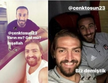 Porto'yu deplasmanda 3-1 mağlup eden Beşiktaş'ta karşılaşma öncesinde siyah beyazlı takımın iki yıldızı Cenk Tosun ve Caner Erkin bir araya gelmiş, Caner sosyal medya hesabından, Cenk için "Yarın mı? Gol mü? İnşallah" paylaşımı yapmıştı.