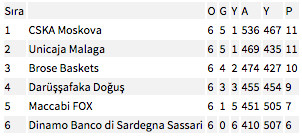 Galatasaray bedavaya aldı 10 milyon euroya satacak!Basketbol THY Avrupa Ligi D Grubu'nda 6. hafta sonunda puan durumu şöyle: