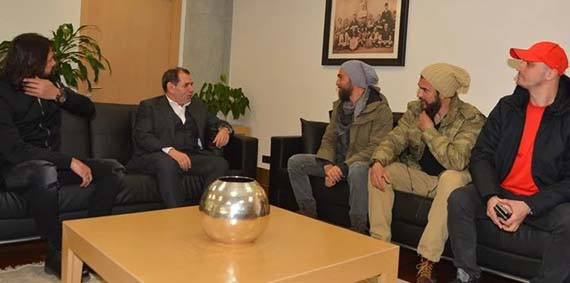 TRT'nin en sevilen dizilerinde Diriliş Ertuğrul'un başrol oyuncuları; Engin Altan Düzyatan, Cem Uçan ve Cengiz Coşkun Fenerbahçe derbisi öncesi Galatasaray Spor Kulübü Başkanı Dursun Özbek'in davetlisi olarak Türk Telekom Arena'da yerlerini aldılar.