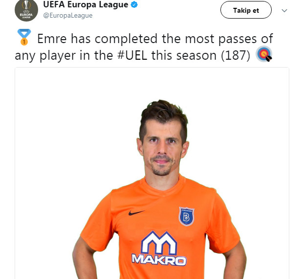 Medipol Başakşehir'in kaptanı Emre Belözoğlu, UEFA Avrupa Ligi'nde en çok isabetli pas (187) atan oyuncu oldu.