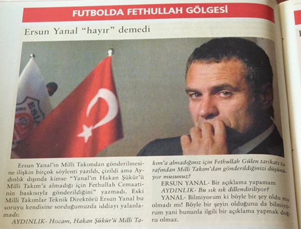 Ersun Yanal da FETÖ kurbanı olmuş!"Ersun Yanal’ın Milli Takımdan gönderilmesine ilişkin birçok söylenti yazıldı, çizildi ama kimse “Yanal’ın Hakan Şükür’ü Milli Takım’a almadığı için Fethullah Cemaatinin baskısıyla gönderildiğini” yazmadı. Eski Milli Takımlar Teknik Direktörü Ersun Yanal bu soruyu kendisine sorduğumuzda iddiayı yalanlamadı: