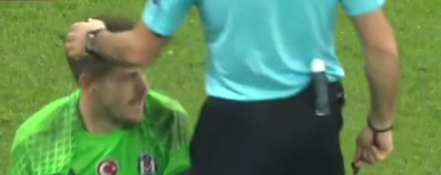 Yaptığı büyük hatayla Beşiktaş'ın Lyon'a yenilmesine sebep olan Fabri'yi mücadelenin hakemi Miguel Mateu Lahoz teselli etti.