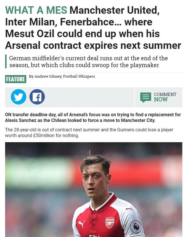 İngiliz gazetesi The Sun'ın iddiasına göre Fenerbahçe önümüzdeki yaz transfer döneminde yıldız oyuncuyu kadrosuna katabilir. The Sun'daki haberde Mesut için eski hocası Mourinho'nun çalıştırdığı Manchester United'ın ve Milan'ın devrede olduğu yazarken, 28 yaşındaki oyuncunun İstanbul'da çok vakit geçirmesi nedeniyle sarı-lacivertli kulübe daha yakın olduğu belirtildi.