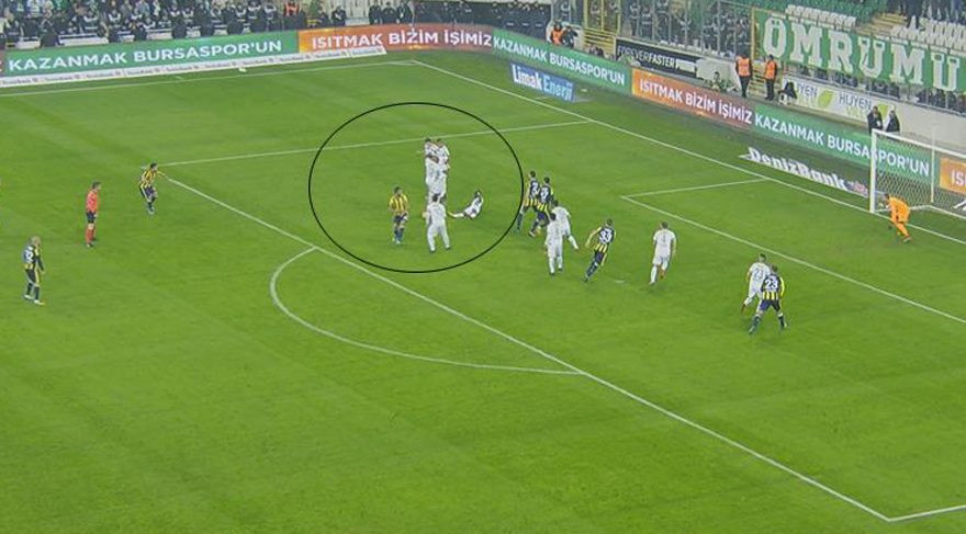 Bursaspor – Fenerbahçe maçının 18. dakikasında ilginç bir pozisyon yaşandı. Sarı lacivertliler Aatif’ın düşürülmesiyle tehlikeli bir yerden serbest vuruş kazandı.