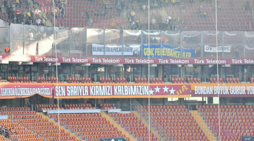 Galatasaray’ın tribün grubu ultrAslan’ın kurucu liderlerinden olan ve 2008 yılında hayatını kaybeden Alpaslan Dikmen için pankart açan Fenerbahçe tribünü “Kalbimizdesin Alpaslan Dikmen” yazılı pankartla sarı kırmızılı taraftarlara jest yaptı.