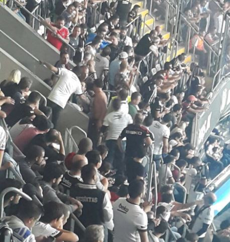 Galatasaraylı taraftarlar, tribünde Beşiktaşlı bir grup taraftarın saldırısına maruz kaldı. Forması zorla üzerinden çıkarttırılan iki genç, tribünden de kovuldu.