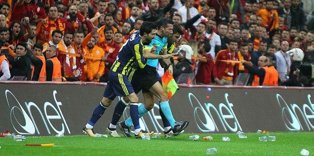 Daily Mail: İstanbul Derbisi'nde Galatasaray taraftarının füze yağmuruna tuttuğu yan hakem yerde kaldı. Ateşli derbide gelen füzelere Fenerbahçeli oyuncular kalkan oldu.