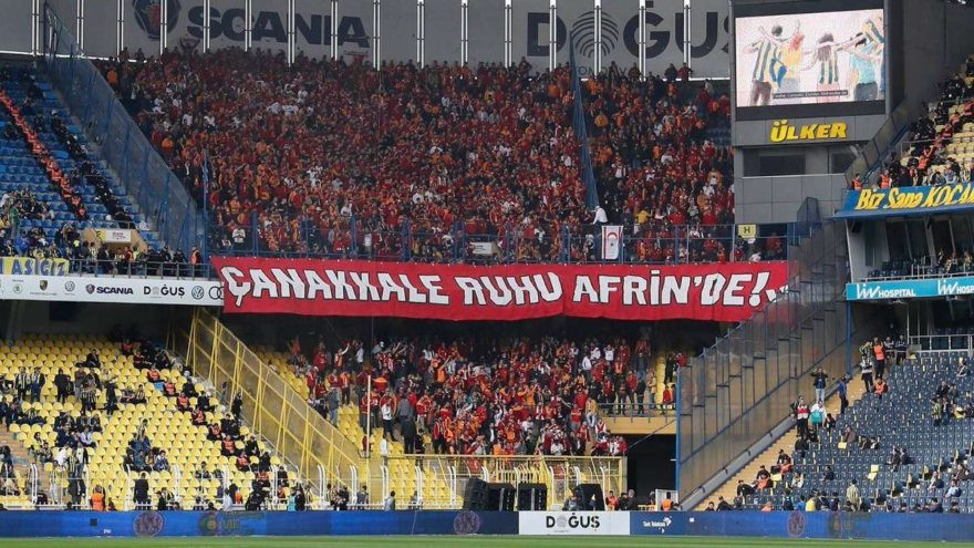 Sarı kırmızılıların pankartı Fenerbahçe tribünlerinden de alkış aldı. Çanakkale Ruhu Afrin’de yazılı pankart sosyal medyada da büyük ilgi gördü.
