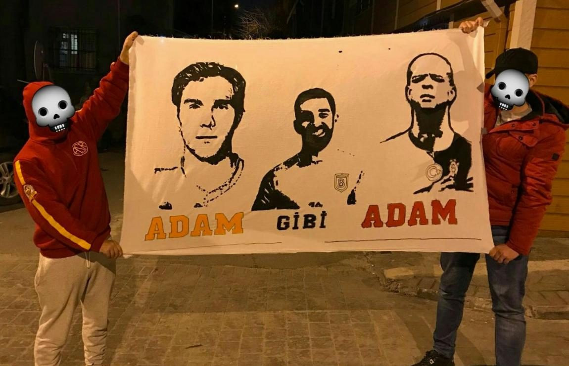 Galatasaraylı bir grup taraftar, Arda’nın ‘adamlık’ sözlerine gönderme yaparak Elmander ve Melo’ya sevgilerini dile getirdi