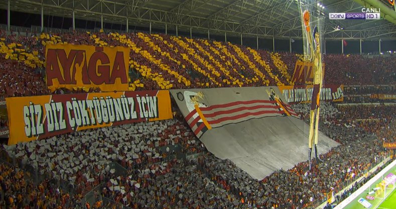 Süper Lig'de Galatasaray, Fenerbahçe'yi Türk Telekom Stadı'nda konuk ederken Sarı-Kırmızılı taraftarından koreografi sürprizi geldi.