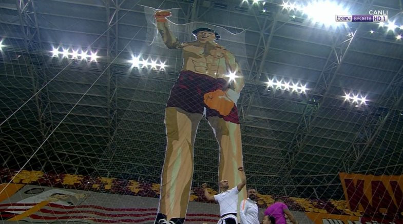 Maç öncesi Galatasaray taraftarları kale arkasında koreografi gösterisi hazırladı.