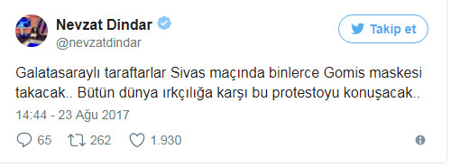 Taraftarların isteği üzerine harekete geçen Galatasaray yönetimi, Bafetimbi Gomis'in maruz kaldığı ırkçı söyleme tepki göstermek amacıyla Sivasspor maçında dünyada yankı uyandıracak bir protesto hazırlığı içerisine girdi.