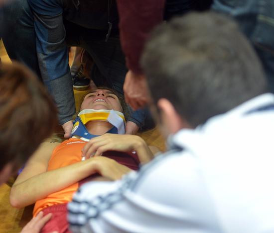 Basketbolda Galatasaray'da forması giyen Pınar Demirok, Beşiktaş maçında yere düşerek kafasını parkeye vurdu.