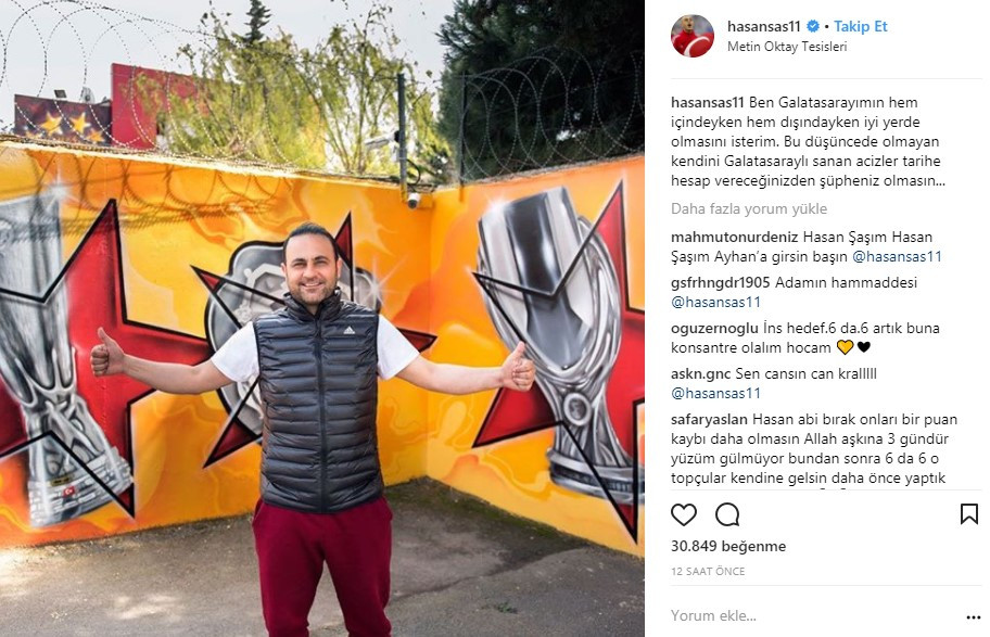 Instagram hesabından bir fotoğraf ve mesaj paylaşan Hasan Şaş, “Ben Galatasaray’ımın hem içindeyken hem de dışındayken iyi yerlerde olmasını isterim. Bu düşüncede olmayan kendini Galatasaraylı sanan aciz insanlar tarihe hesap verecektir. Şüpheniz olmasın..” ifadelerini kullandı.
