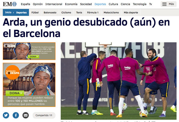 Arda Turan'ın iyi bir dönemden geçmediği belirtilen haberde, "Arda henüz Barça'ya uyum sağlayamadı. Sahada kendine bir yer bulamıyor. İlk 11'e kendini sabitleyemedi ve sahada dikkat çeken bir hareketi yok." değerlendirmesinde bulunuldu.