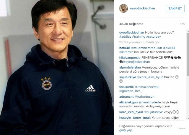 Ünlü aktör Jackie Chan resmi Instagram hesabından Fenerbahçe logosu taşıyan spor kostümüyle boy gösterdi. Jackie Chan'ın bu hareketi sonrası Fenerbahçe taraftarı kendisine övgü dolu sözlerde bulundu.