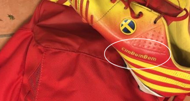 İsveç'in Örgryte kulübünde top koşturan eski Galatasaraylı Johan Elmander, ligdeki IK Frej Taby maçına üzerinde "Cimbombom" yazılı kramponlarla çıktı.