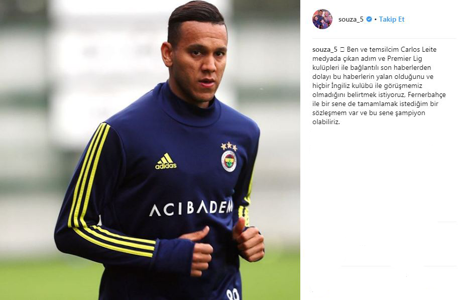 Adı uzun bir süredir İngiliz kulüpleriyle transfer dedikodularına karışan Fenerbahçe'nin Brezilyalı yıldızı Josef De Souza, iddialara sosyal medya hesabından yanıt verdi.