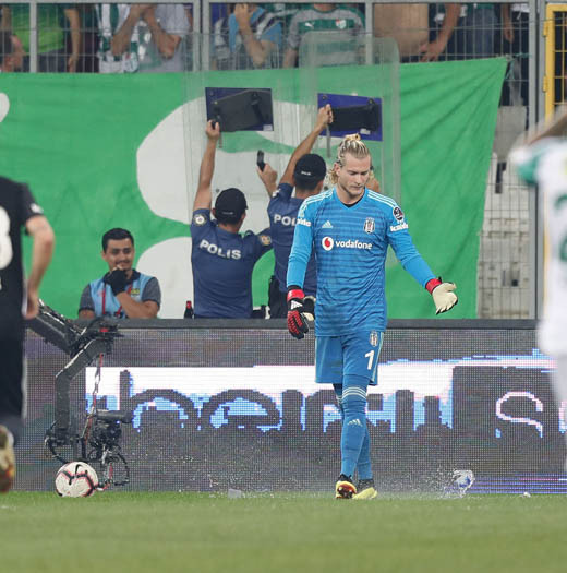 Siyah-beyazlı formayla ilk maçına çıkan Alman kaleci Karius, Bursa deplasmanında sahaya atılan su şişelerinden dolayı yaşadığı şaşkınlığı gizleyemedi.