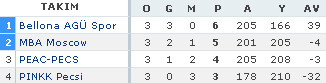 MBA Moscow takımı ile Rusya'da kazanan temsilcimiz Bellona Agüspor, ilk yarısını 1 sayı ile önde tamamladığı maçı 14 sayı farkla tamamlayarak grubundaki 3.maçında 3.galibiyet elde etti.