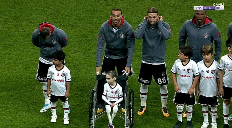 Beşiktaş-Konyaspor maçı öncesi gerçekleştirilen seremoniye Cenk Tosun'la birlikte çıkan Cumali'nin mutluluğu gözlerinden okundu.