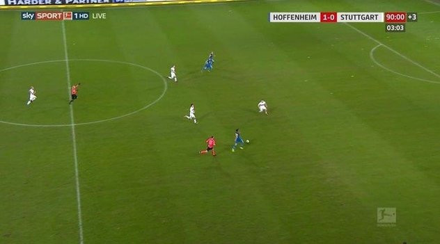 Ancak pozisyonda top Hoffenheim orta sahası Kerem Demirbay'da kaldı. Kerem de hızlı bir şekilde topla rakip yarı alana geçti. Ancak Kerem, boş kaleye vurmak yerine o sırada kural gereği ofsaytta olan Kramaric'e pas verdi. Kramaric, Suttgart'tan sadece Ascacibar'ın kendi kalesine yakın olmasından dolayı ofsayt pozisyonundaydı...