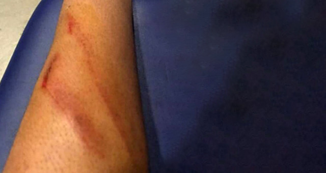 Genç futbolcu maç sonrası rakip futbolcunun kramponunun izinin çıktığı bacağının fotoğrafını, "Söyleyecek bir şey yok" mesajıyla sosyal medya hesabından paylaştı.