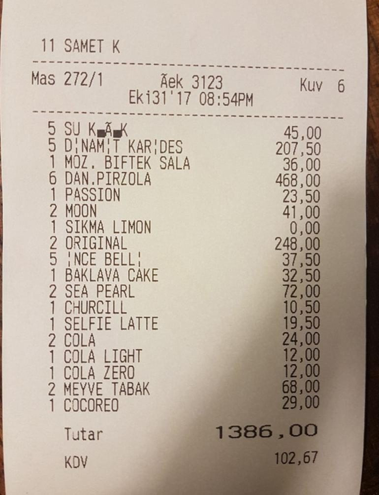 Marouane Fellaini ve arkadaşları, gittikleri mekanda et ağırlıklı yemeğin sonunda 1386 lira hesap ödedi.