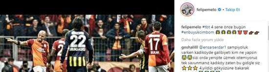 Sosyal medyayı çok akfit kullanan Felipe Melo, Fenerbahçe'yi Türk Telekom Stadyumu'nda 1-0 yendikleri maçı hatırlatırken, ''4 yıl önce bugün'' mesajını yayınladı.
