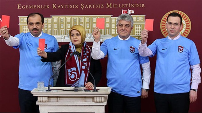 AK Parti Trabzon Milletvekilleri Trabzonspor-Galatasaray maçı sonrasında yaşananlardan dolayı Türkiye futbol Federasyonu ve Merkez Hakem Kurulunu istifaya davet ederek Meclis'te kırmızı kart gösterdi.