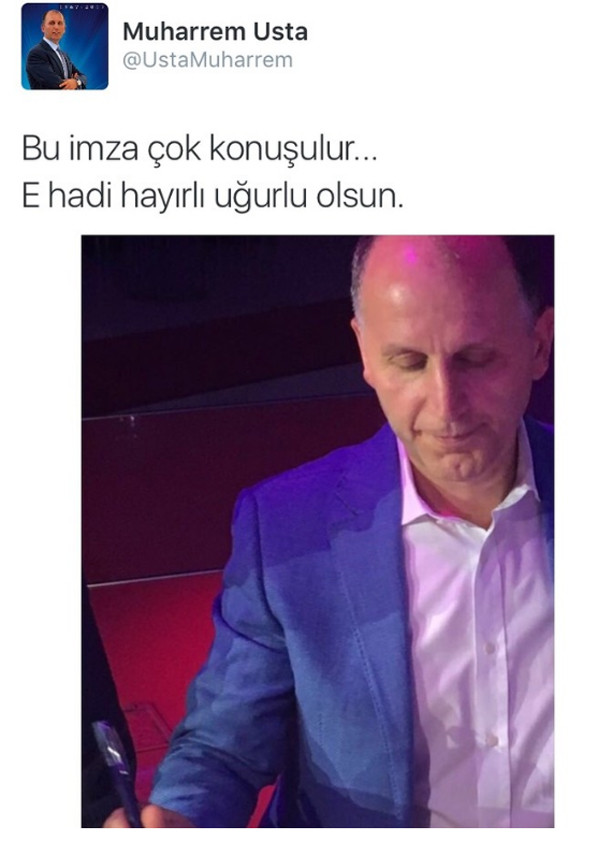 Sosyal medyayı oldukça aktif kullanan Muharrem Usta twitter hesabından bir imza fotoğrafı paylaştı.