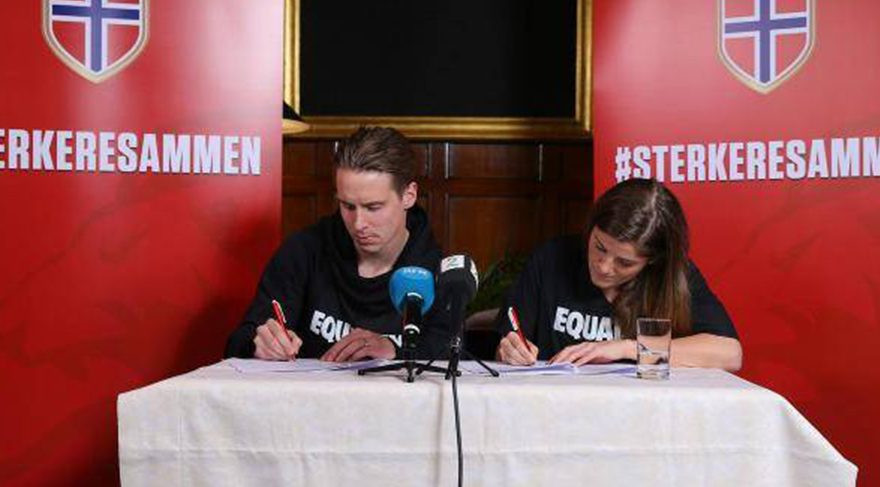 Norveç, tarihi bir karara imza attı. Norveç Milli Futbol Takımı'nda forma giyen kadın ve erkek futbolcular yapılan anlaşmaya göre federasyondan eşit ücret kazanacak.