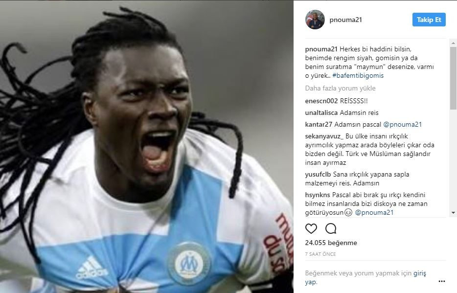 Nouma sitemini “Herkes bir haddini bilsin, benimde rengim siyah, Gomis'in ya da benim suratıma “maymun” desenize var mı o yürek?” sözleriyle dile getirdi.