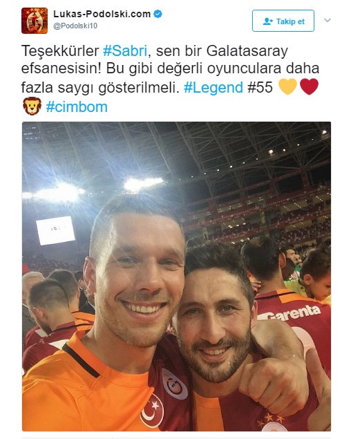"Teşekkürler Sabri, sen bir Galatasaray efsanesisin! Bu gibi değerli oyunculara daha fazla saygı gösterilmeli"
