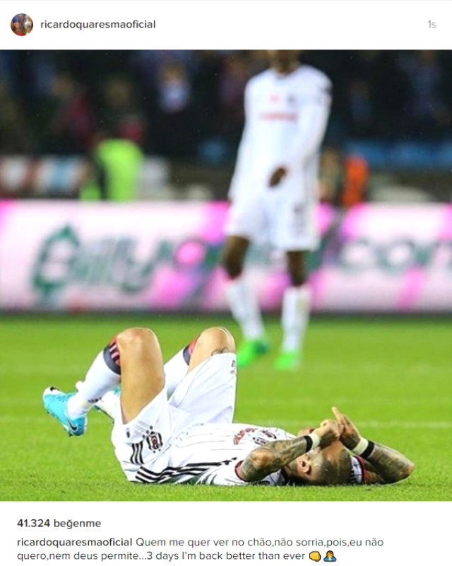Ricardo Quaresma, sakatlığıyle ilgili Instagram hesabından açıklama yaptı ve, "Beni sakat görmek isteyenler boşuna fazla sevinmesin. Ne ben, ne de Tanrı yerde olmamı istemiyoruz. 3 güne daha iyi geri döneceğim" ifadelerini kullandı.